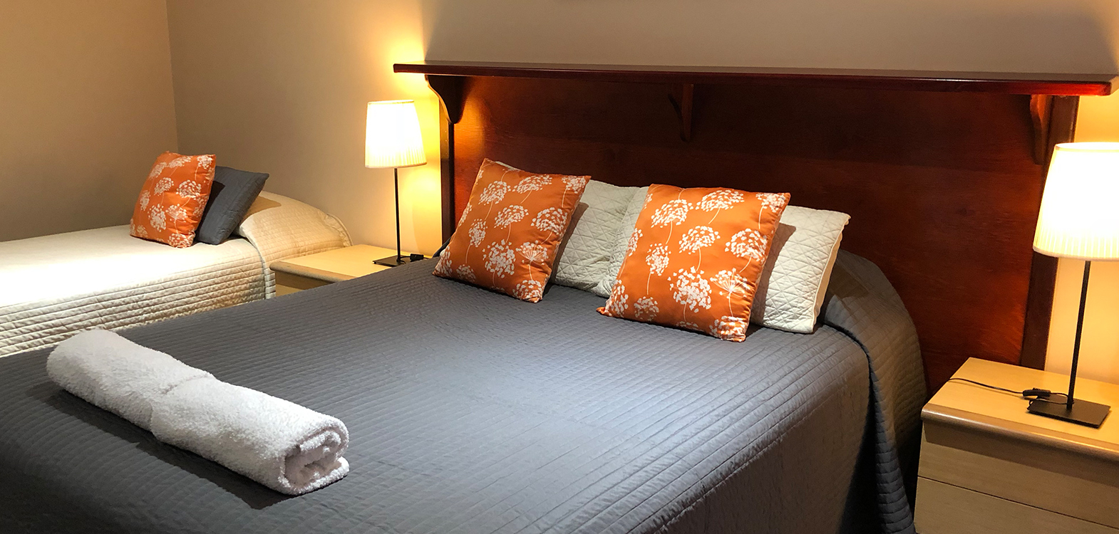 With a Queen size bed and a Single bed, these spacious rooms include a state of the art 32cm flat screen TV for your entertainment needs. All triple rooms have their own private bathroom, with toiletries supplied. Each room is equipped with coffee and tea making facilities, and small bar fridge for your convenience. Cozy room heaters available on request.